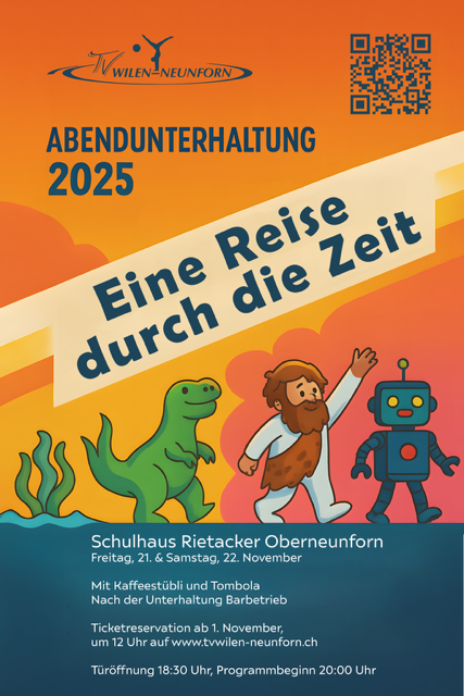 Die diesjährige Abendunterhaltung des Turnvereins Wilen-Neunforn findet am Freitag, 21. & Samstag, 22. November 2025 im Schulhaus Rietacker in Oberneunforn statt.